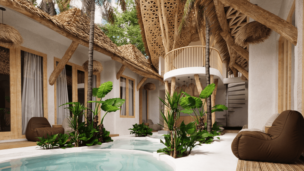 The interplay of water features, such as private pools or nearby lagoons, adds a sense of tranquility. Surrounding these elements with vibrant greenery enhances the villa’s connection to nature, ensuring it feels like an extension of the landscape rather than an intrusion.