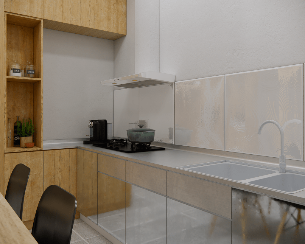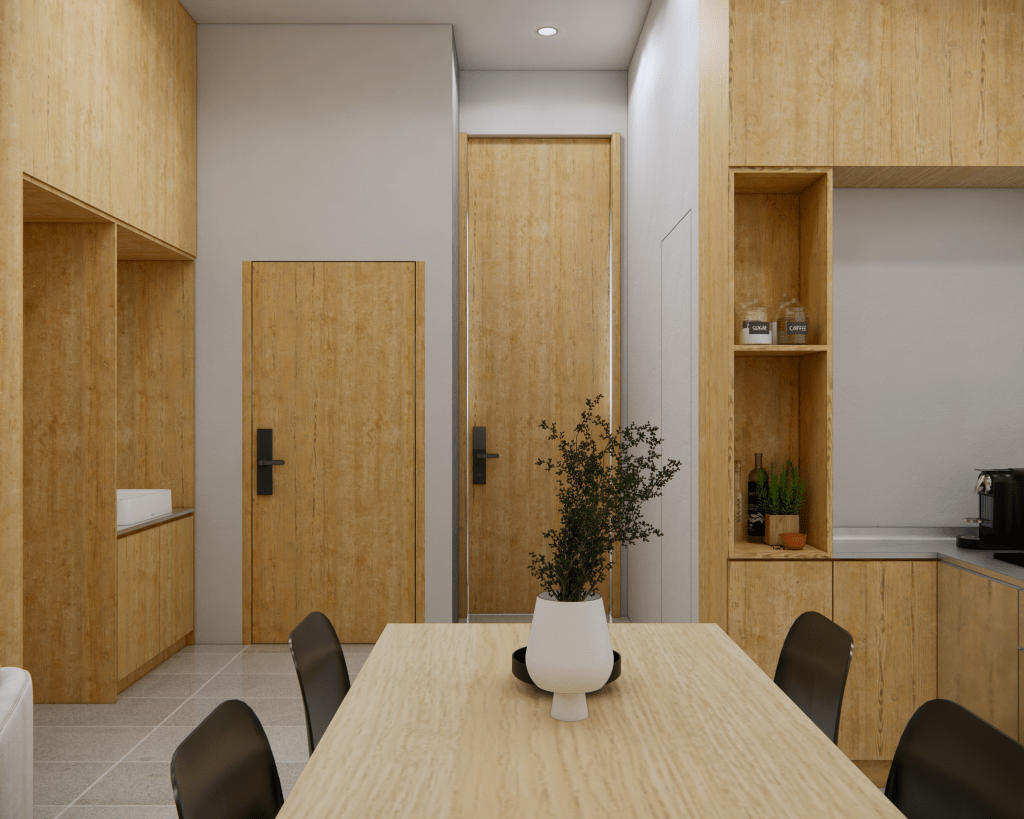 The monochrome minimalist concept appeals to those who value simplicity, organization, and a clutter-free lifestyle. The neutral tones provide flexibility for interior decor, allowing homeowners to personalize the space with furniture or art without overwhelming the design.