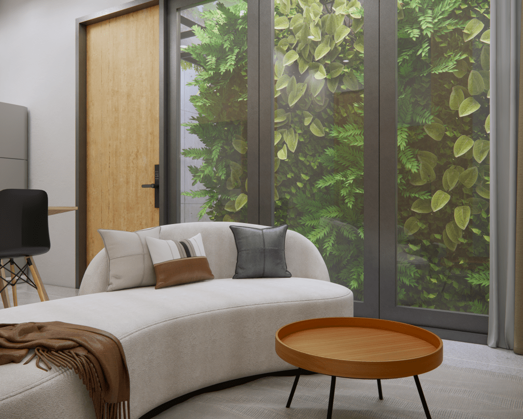 This particular design uses materials such as raw concrete, bricks, and metal, emphasizing texture over color. The subtle interplay of natural light with these materials enhances the minimalist tone without appearing dull or lifeless.