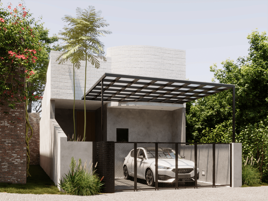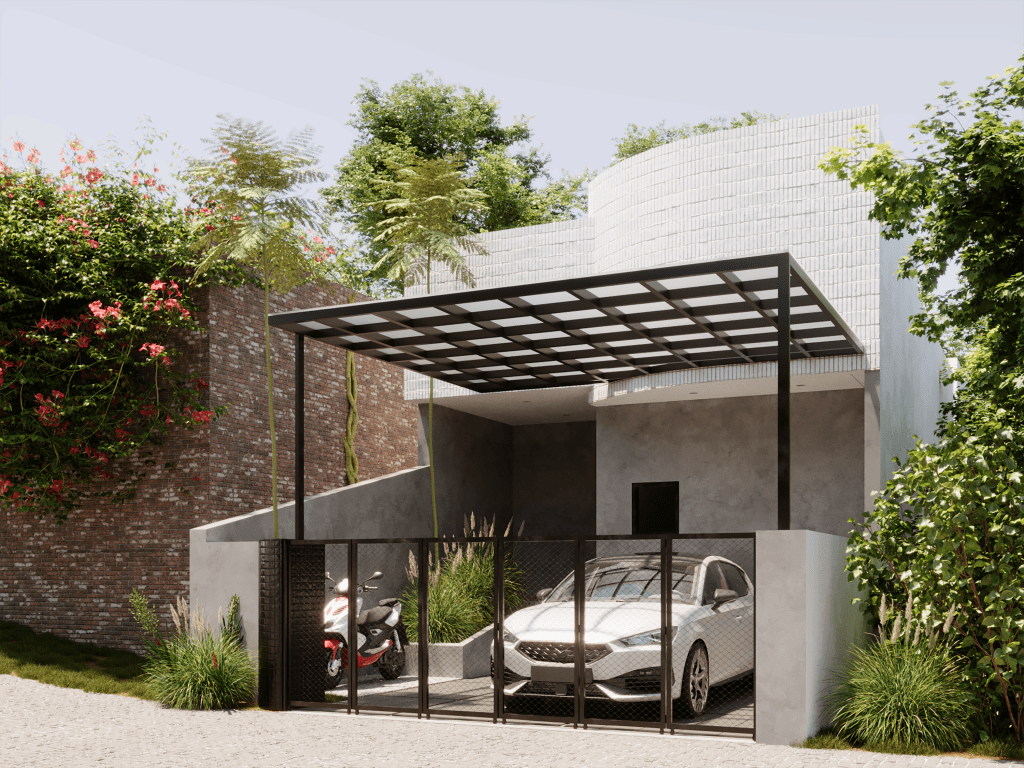 The carport is designed with both aesthetics and functionality in mind. The transparent roofing material allows sunlight to filter through, ensuring the space feels open while providing protection for vehicles. - Sustainable Design